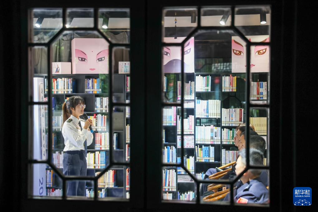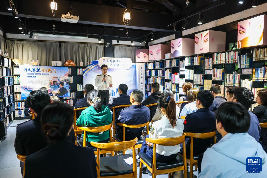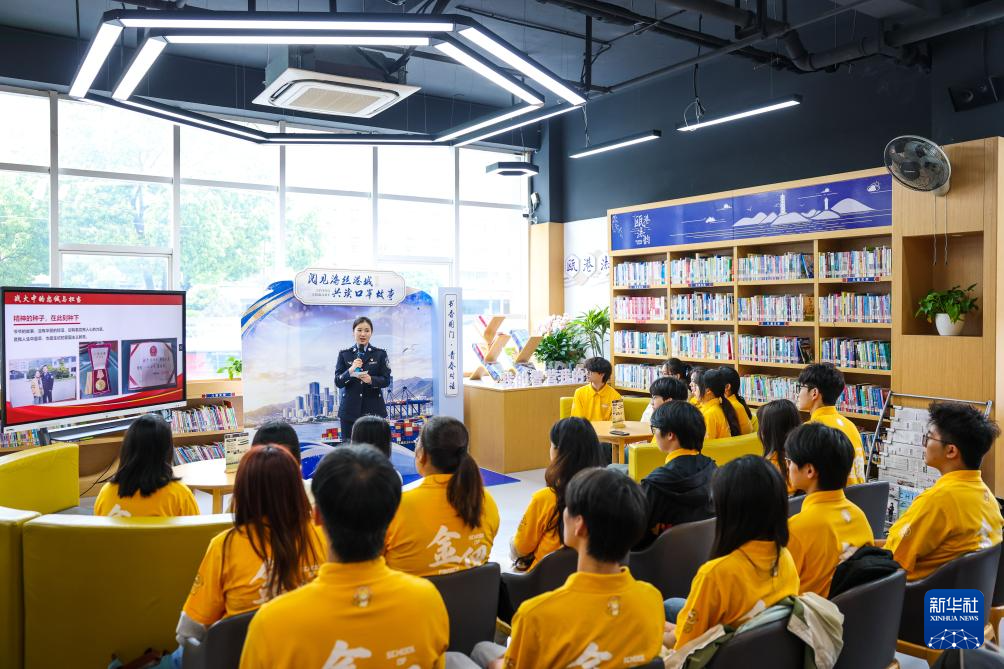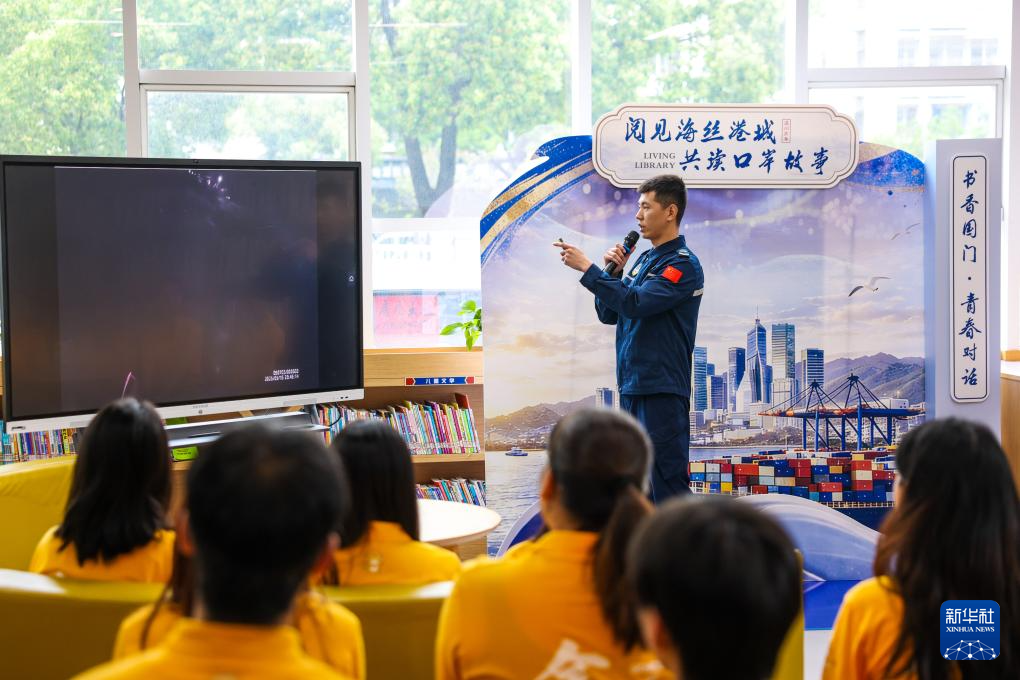 米兰体育在温州市瓯海区警营城市书斋,温州海警局轨则员赵海然在“真东说念主藏书楼”行径中与后生学目生享我方履行任务时的故事。 新华社记者 江汉 摄" />