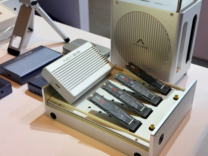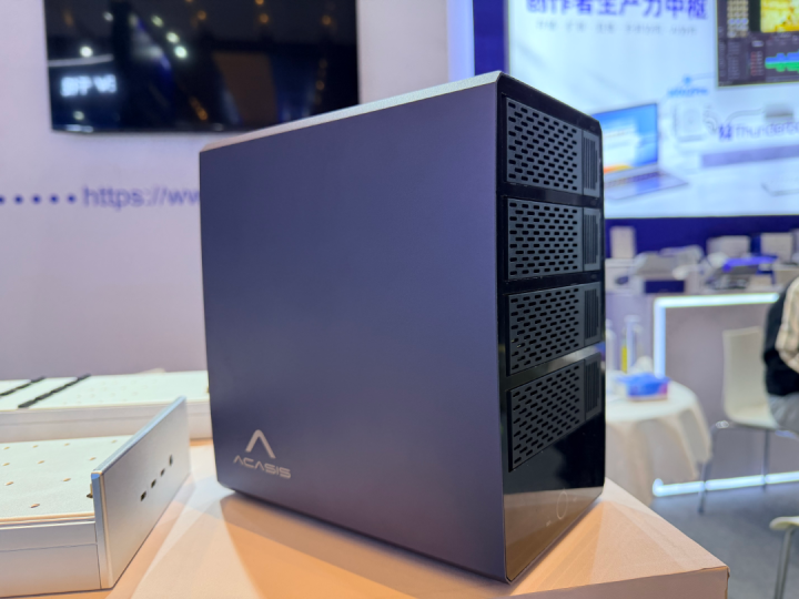 阿卡西斯还要点展示了为 Mac mini 打造的配件机箱与底座。其提供彭胀 NVMe、罕见 USB 端口及增强散热才气,让 Mac mini 成为确实的微型使命站。